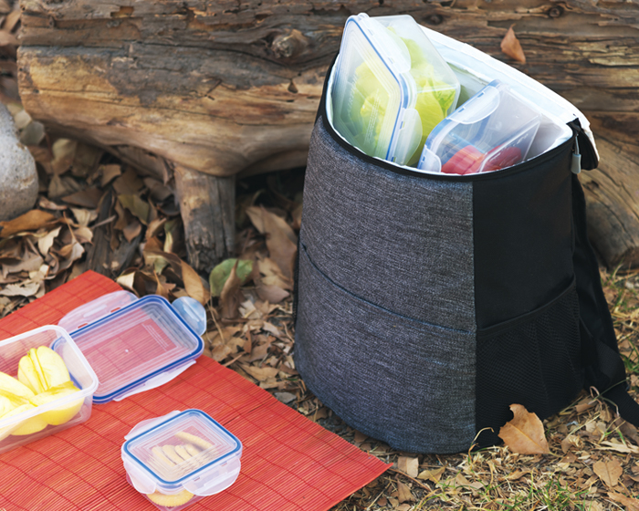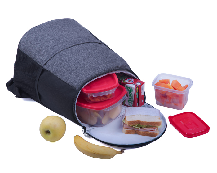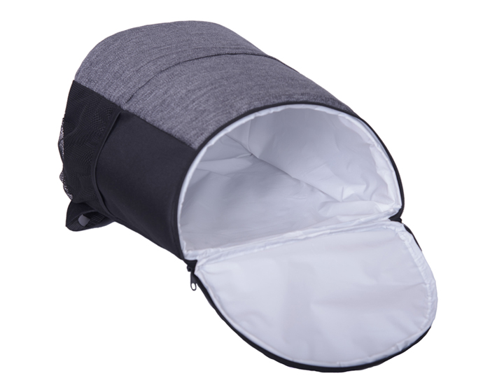Hielera térmica cuenta con dos compartimentos. Interior plastificado. Dos bolsas laterales de malla. Correas ajustables. Parte inferior de material repelente al agua. (El cierre se vende por separado del color de su elección. Este producto requiere 2 cierres.)