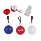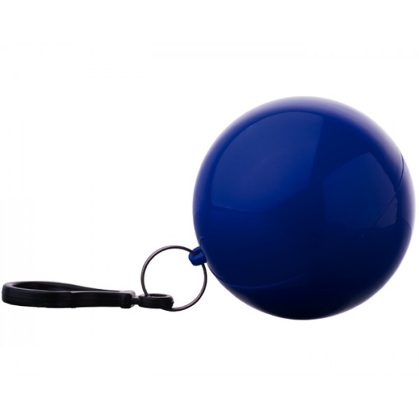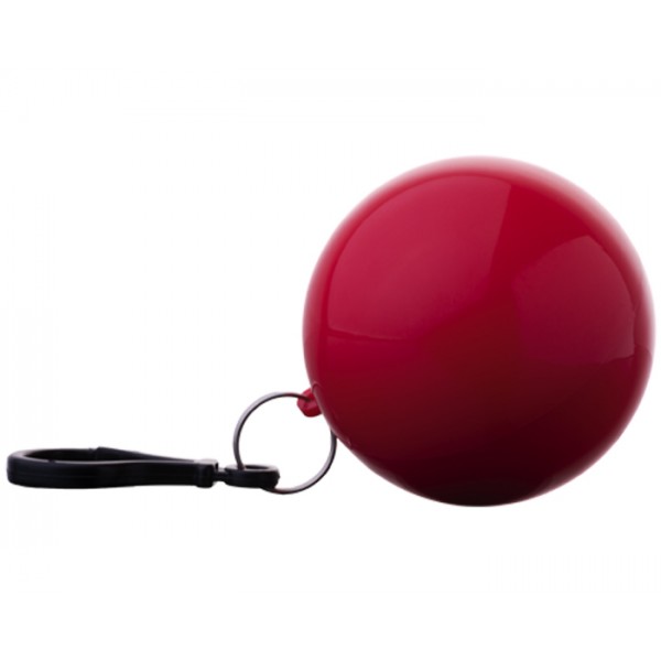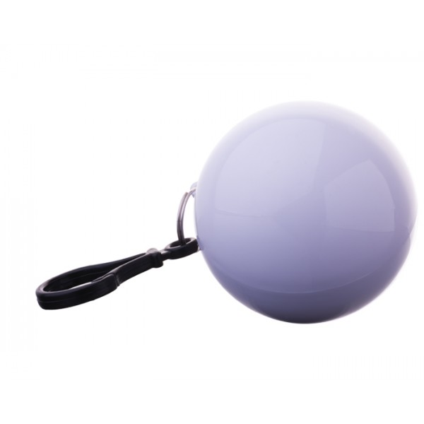 Práctico impermeable en esfera de plástico con gancho para sujetar tipo llavero, cómodo y compacto para emergencias.