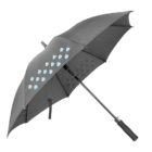 Paraguas circular pongee con sistema de apertura automático, varillas reforzadas y eje central de fibra de carbono, mango de EVA, ocho gajos y 4 gajos impresos con gotas que al tener contacto con la lluvia los vuelven azul fuerte. Incluye funda con agarradera.
