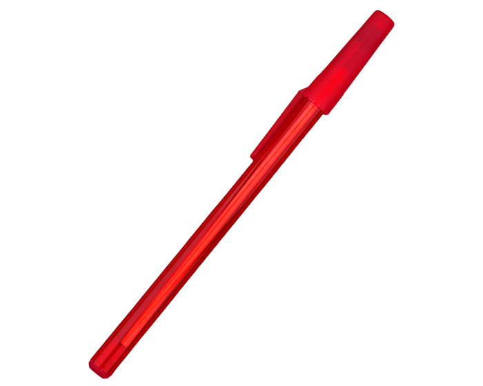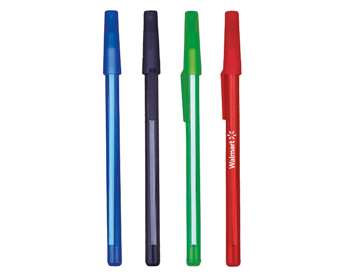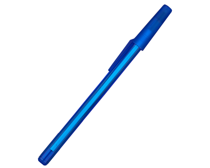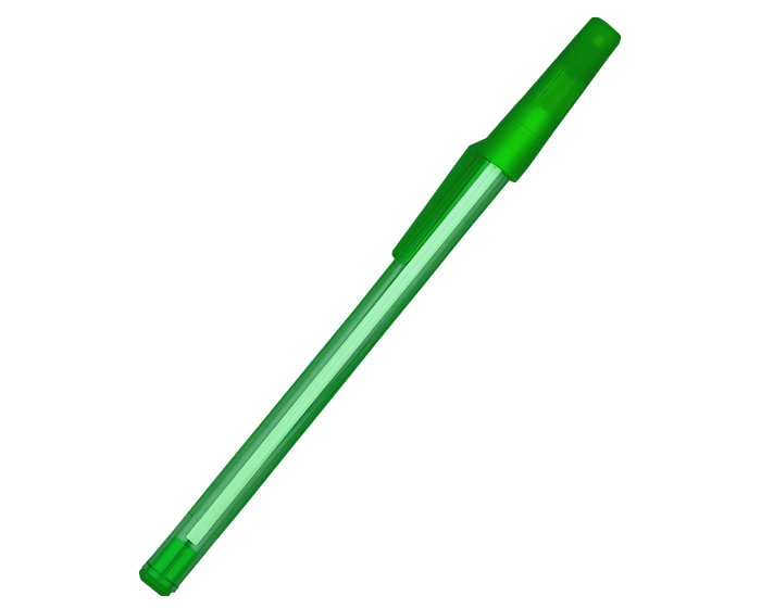 Bolígrafo de plástico con cuerpo traslúcido y tapa con clip. La tapa es del mismo color del cuerpo del bolígrafo. Una opción práctica y económica.