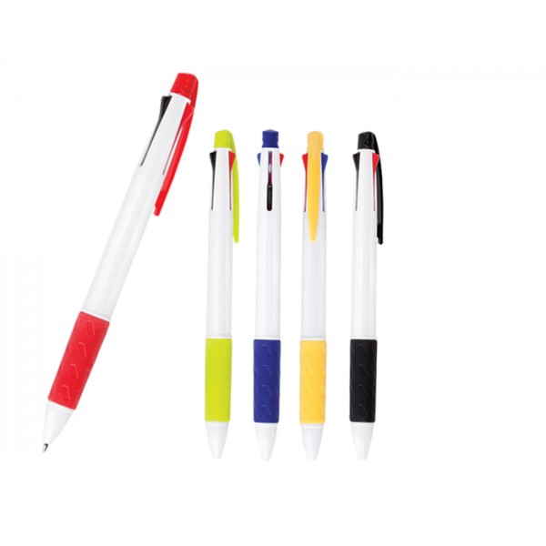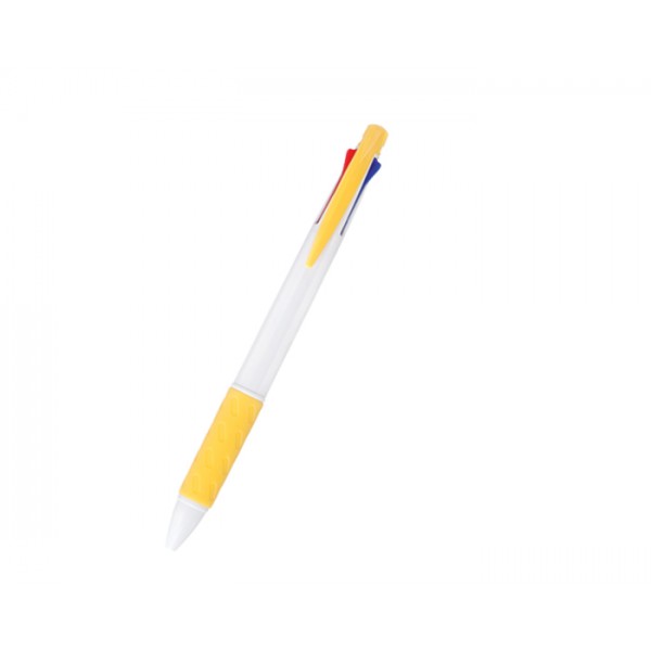Bolígrafo 3 en 1. Tintas: azul, negra y roja. Mecanismo de presión.