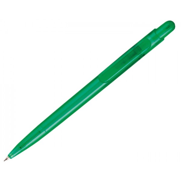 Bolígrafo de plástico translúcido y mecanismo de click.