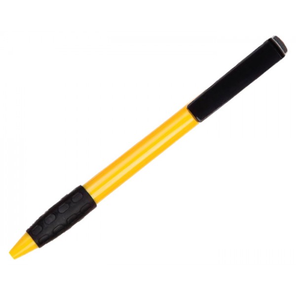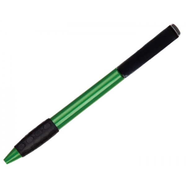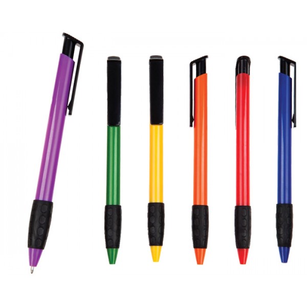 Bolígrafo de plástico con goma antideslizante, mecanismo de click.