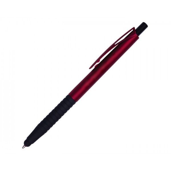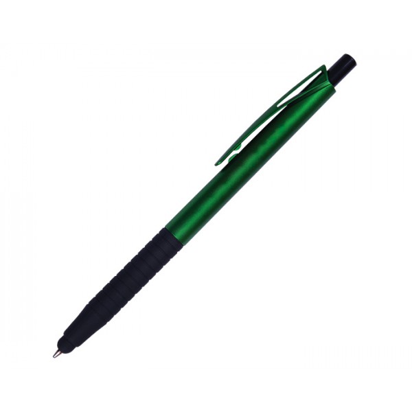 Bolígrafo de plástico en colores metálicos, punta touch y goma antideslizante. Mecanismo de click.