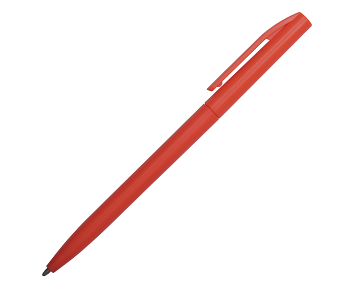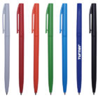 Bolígrafo de plástico con cuerpo y clip de color. Mecanismo retráctil.