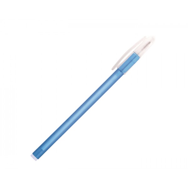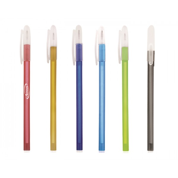 Boligrafo de plástico con cuerpo de color y tapa traslúcida con clip.