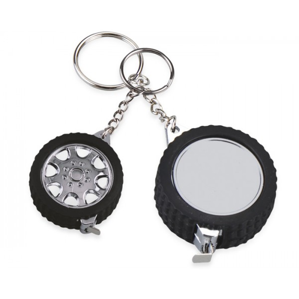 Llavero de plástico con flexómetro de 1 mt. de largo.