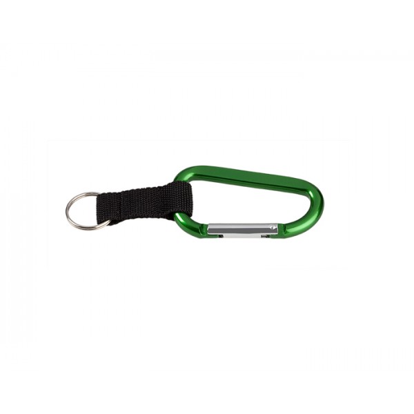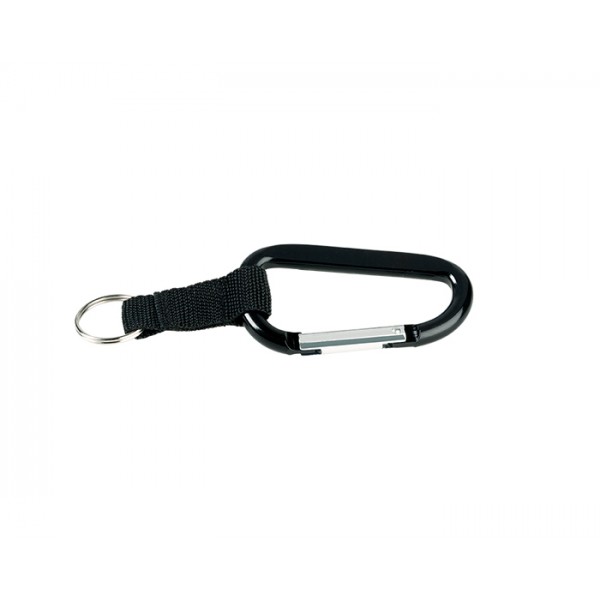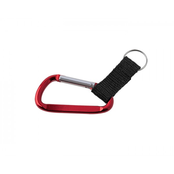 Clip-gancho de metal con cinta de poliester y arillo para llaves.