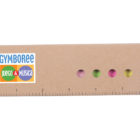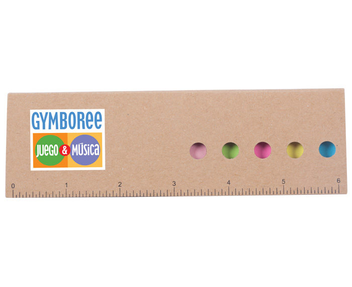 Estuche de papel reciclado con regla impresa de 6 pulgadas, incluye notas y banderas adhesivas de colores.