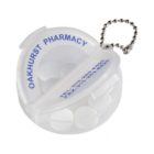 Pastillero de plástico translúcido con doble tapa y dos divisiones, para control de dosis medicinales.