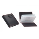 Tarjetero en curpiel con pespuntes en rojo y 10 divisiones de plástico.