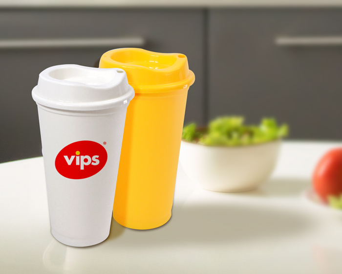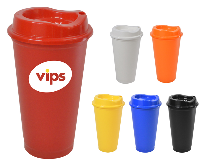 Vaso plástico de una pared ideal para café con tapa a presión. Cap. 450 ml.