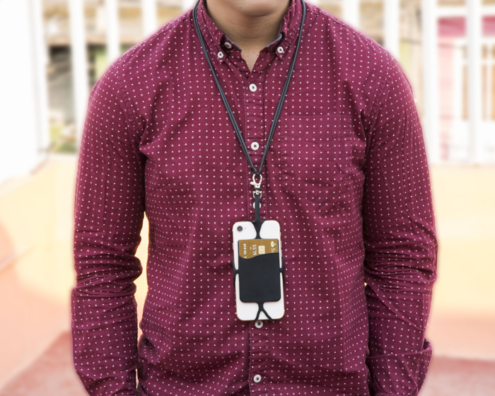 Collar porta celular con tarjetero de silicón. Se puede separar por partes.