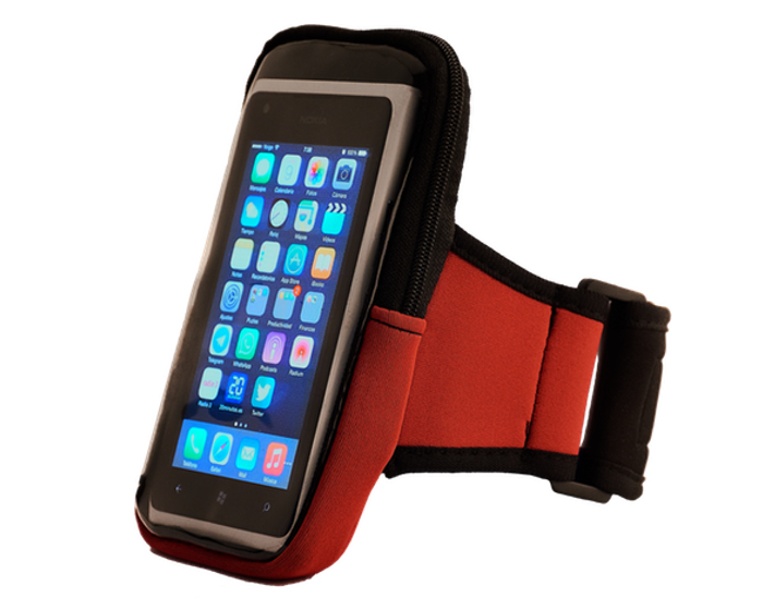 Porta celular universal de Neopreno para sujetarse al brazo con ajuste de velcro. Flexible y resistente, con ventana táctil transparente antireflejante que permite utilizar el celular desde el exterior. Brinda protección completa al equipo. Ligero y práctico, con diseño deportivo y moderno.